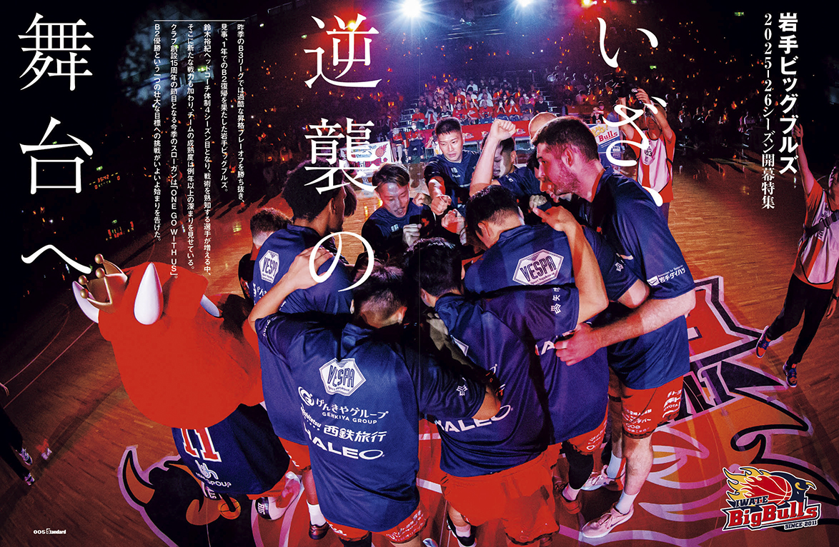 昨季のB3プレーオフでは、過酷な昇格プレーオフを勝ち抜き、1年でB2復帰を果たしたビッグブルズ。鈴木裕紀HC体制4リーズン目となり、戦術を理解する選手が増える中、そこに新たな戦力も加わり、チームの熟成度は例年以上の深まりを見せています。9月に本県で行われたTOHOKU CUPのリポート、鈴木HCインタビュー、今季の活躍が期待されるルーキー、山際爽吾選手・中野友都選手の対談を掲載し、25-26シーズンを展望します。